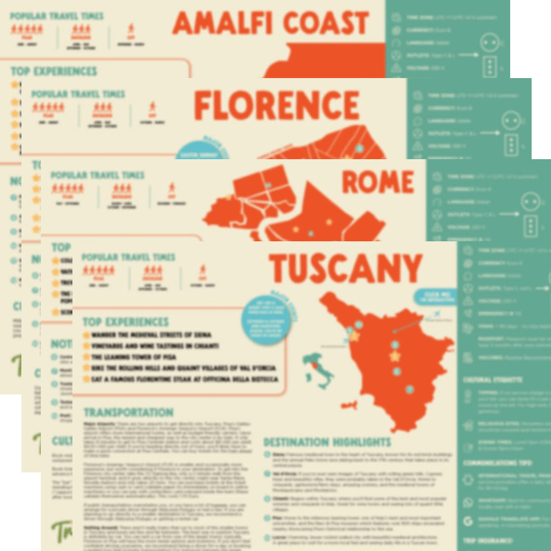 Visiting Tuscany is like stepping into a painting – rolling hills, cypress-lined drives, medieval towns, and gorgeous vineyards are around every turn. From Siena to Chianti to the Val d’Orcia, you’ll find the perfect mixture of cuisine, culture, and countryside.